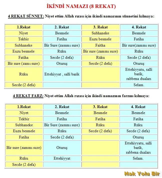 İkindi namazı kaç rekat?